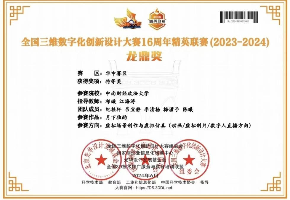 全国三维数字化创新设计大赛(简称3D大赛)由科技部、工信部、教育部、中国科协指导,国家制造业信息化培训中心等单位主办,是全国规模最大、规格最高、水平最强、影响最广的大型公益品牌赛事与“数字化+创新创造”行业盛会之一。对推进中国式现代化产业体系建设,加快发展新质生产力,特别是引导广大青年学生积极投身数字化创新创造实践的时代洪流,发挥了不可替代的作用。大赛秉承“以赛促教、以赛促学、以赛促用、以赛促新”的宗旨,倡导“数字经济+创新文化+工匠精神”融合发展,被教育部正式列入全国高校学科评估体系,吸引了全国各所高校的师生积极参与,竞争激烈。本次获奖,不仅是对我院师生专业创作能力的认可,更是对我院人才培养质量的充分肯定。