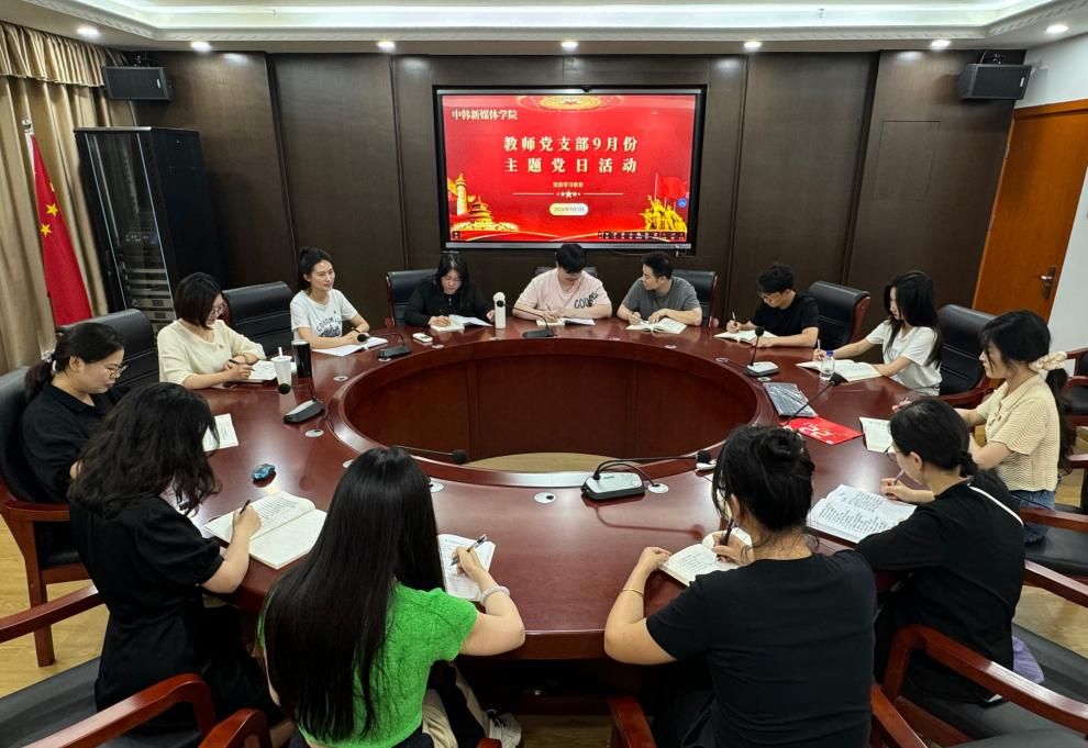 新闻网讯(通讯员 曹翊君)2024年9月5日下午,中韩新媒体学院教师党支部在文济楼411举行了九月主题党日活动,旨在学习贯彻党的二十届三中全会精神,为进一步全面深化改革凝心聚力。本次活动由教师党支部书记马志远主持,全体教师党员参加。