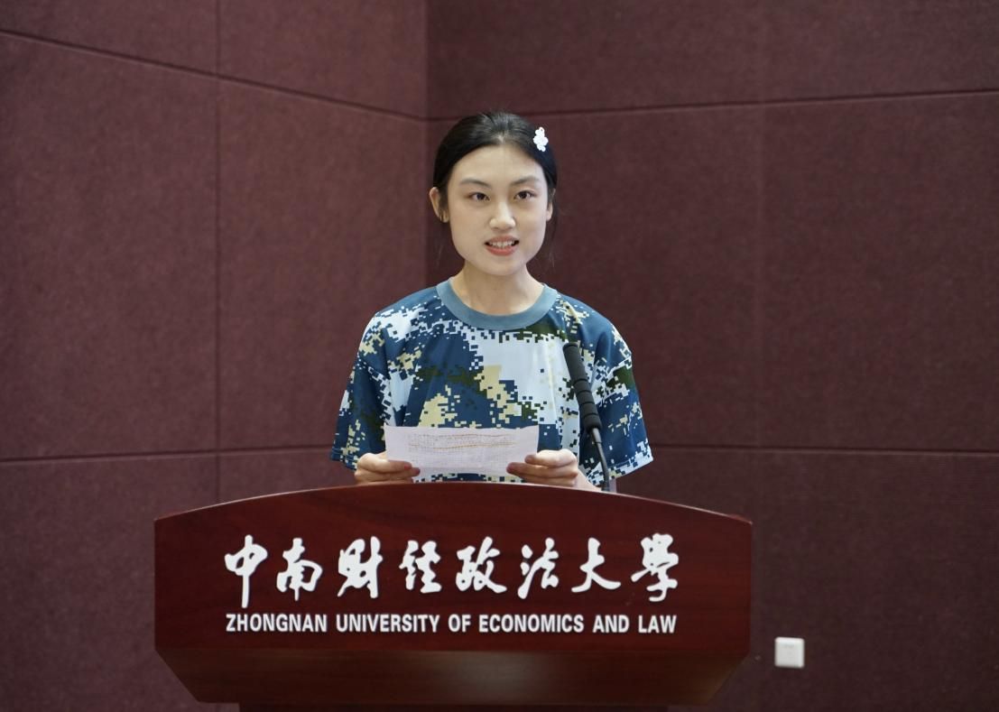 电影2404班潘烨作为新生代表发言。她谈到,大学生活饱含着过去对未来的憧憬,随着新篇章的开启,新时代的大学生应不驰于空想,不骛于虚声,以求真的态度求学,“雄关漫道真如铁,而今迈步从头越”,追梦不止,新征程上继续踏实奋斗。
