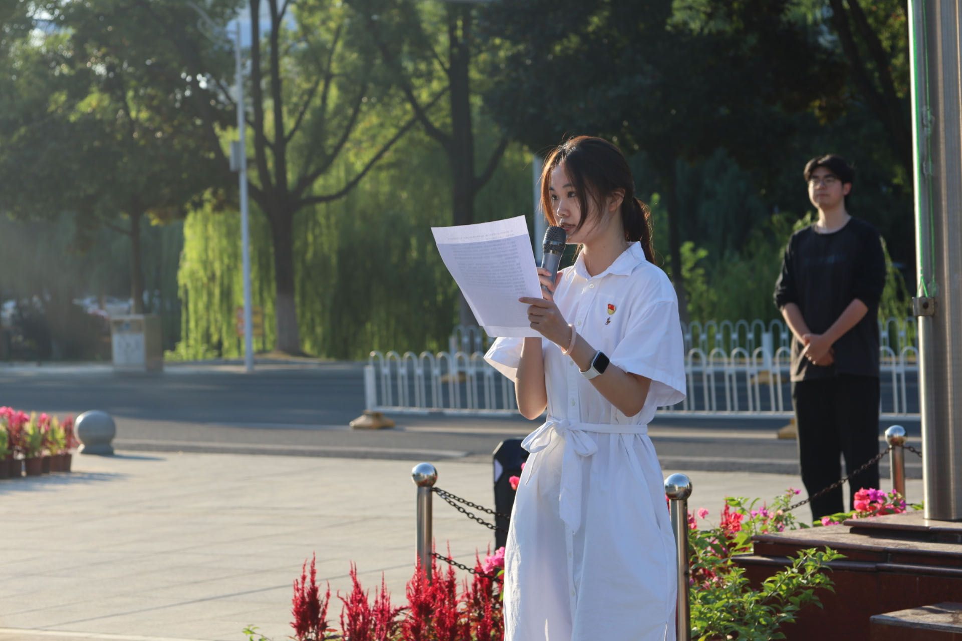 升旗仪式后,2023级的四位同学在国旗下深情朗诵了爱国主义诗篇《红旗渠》。他们用振奋的诵词歌唱了红旗渠精神的赞歌,这不仅仅是对一段历史的回顾,更是对当代青年责任与担当的深刻诠释。