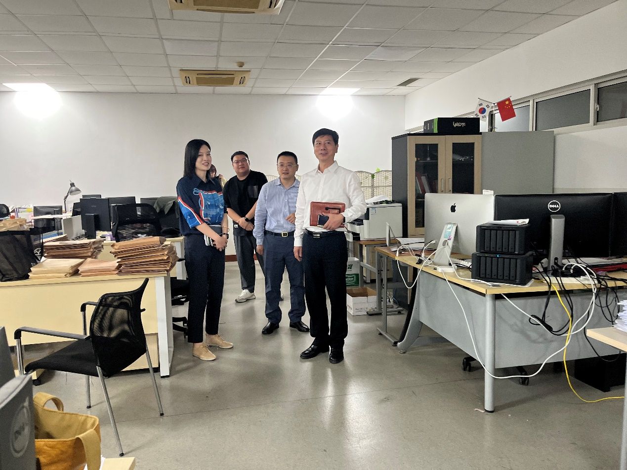 10月15日下午,校长、党委副书记朱方伟深入中韩新媒体学院走访调研。朱方伟观看了教学实践作品展示,参观了实验室和产学工作室,走访了电影学教研室和动画教研室,查看了课堂教学情况,就相关工作提出指导意见。
