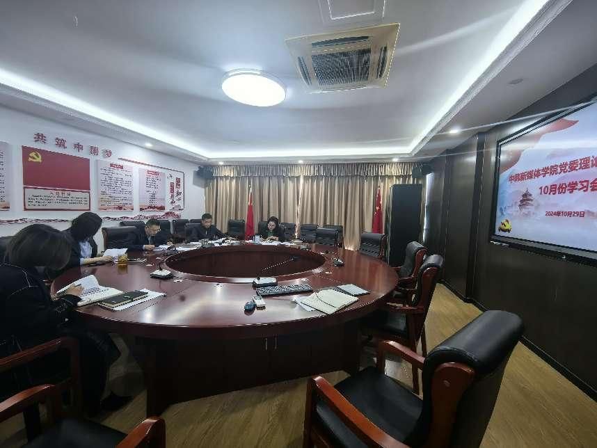 新闻网讯(通讯员 毛承东)根据中韩新媒体学院党委理论学习中心组学习计划,10月29日上午,中心组成员在文济楼411召开学习会,对习近平新时代中国特色社会主义思想和习近平总书记的重要讲话精神进行集中学习,学习会由党委书记于方主持。