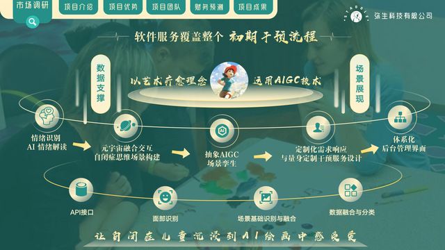 获奖作品旨在利用AIGC技术和艺术疗愈方法,为自闭症儿童提供个性化、沉浸式的康复干预服务。项目通过开发多引擎驱动的AI沉浸式绘画艺术疗愈体验电商集成系统,结合情绪识别、场景交互和虚拟现实技术,为自闭症儿童创造一个能够表达自己、理解外界、促进情感释放和社交能力提升的全新干预场景。