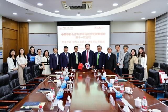 新闻网讯(通讯员 颜升 摄影 崔桢桢 杜鹏)5月16日下午,中韩本科合作办学项目联合管理委员会第十一次会议在我校召开。韩国东西大学校长张济国,副校长南浩铢,国际处处长韩京镐,校长、党委副书记朱方伟,党委常委、副校长刘仁山,国际教育学院院长郑影,财务部副部长胡侃以及中韩新媒体学院相关负责人等参加了本次会议。会议由刘仁山主持。