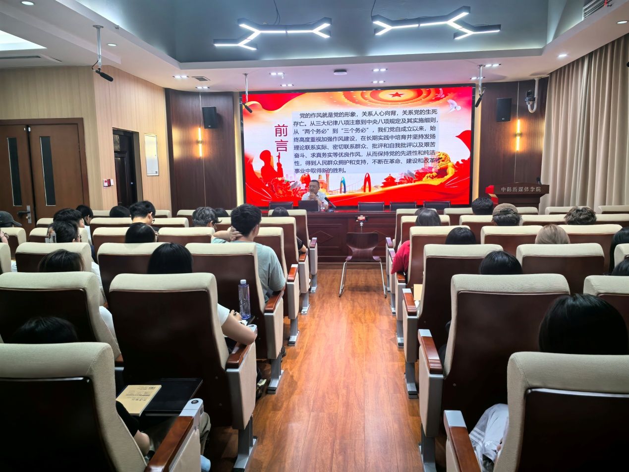 新闻网讯(通讯员 葛卫灿)为深入学习贯彻党的二十大精神,深入贯彻中央八项规定精神学习教育,5月18日晚上在文济楼409报告厅,学院党委书记于方同志以《作风建设永远在路上:党史上的作风建设》为主题,面向全体学生入党积极分子,举行2025年度“同上一门思政课”专题讲座。