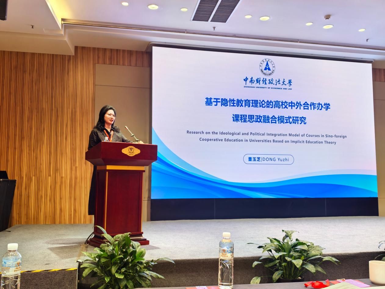 6月12日下午,董玉芝在本次会议分论坛(一)作了题为“基于隐性教育理论的高校中外合作办学课程思政融合模式研究”的专题汇报,报告中,董玉芝系统介绍了高校中外合作办学课程思政建设的现状与挑战,利用隐性教育理论,结合学院课程思政建设案例,并从深化课程思政育人理念、融入育人元素、丰富传播载体、构建评价体系等方面提出了具体优化措施,引起了参会者极大的研究兴趣。
