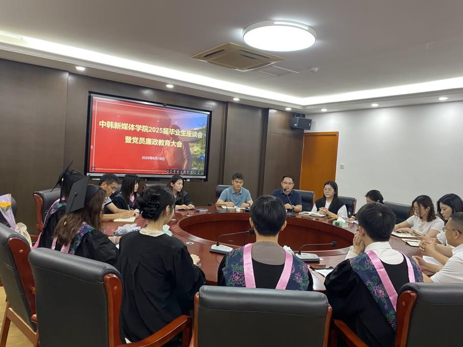 2025年6月19日上午11点,学院2025届毕业生座谈会暨党员廉政教育大会在文济楼411会议室顺利召开。学院党委书记于方、副院长赵博雅(主持行政工作)、副书记徐明等领导及教师代表与2025届毕业生代表齐聚一堂,共话成长与未来。会议由学办主任尤志兵老师主持。