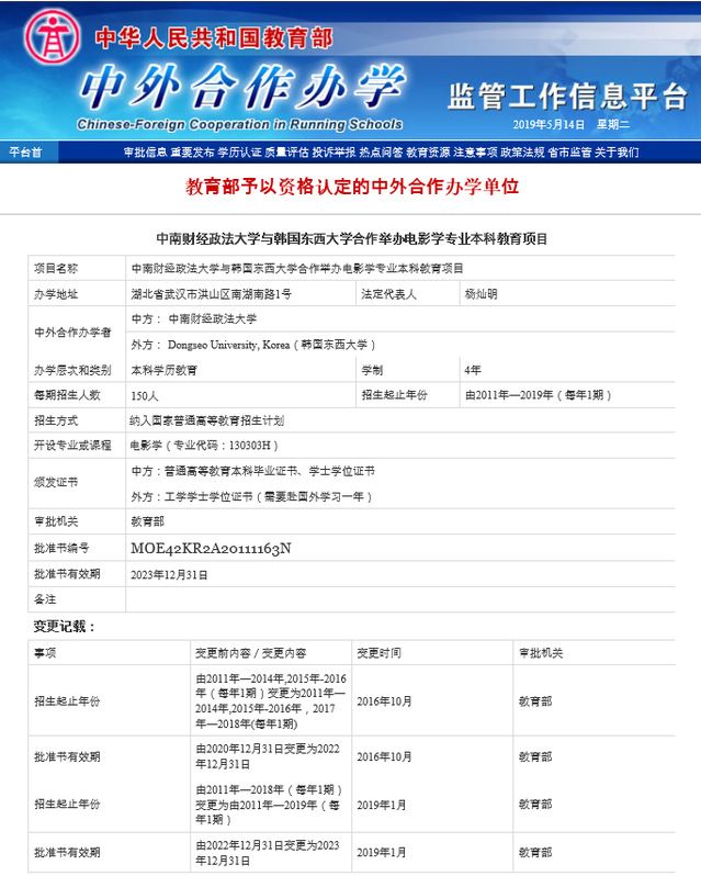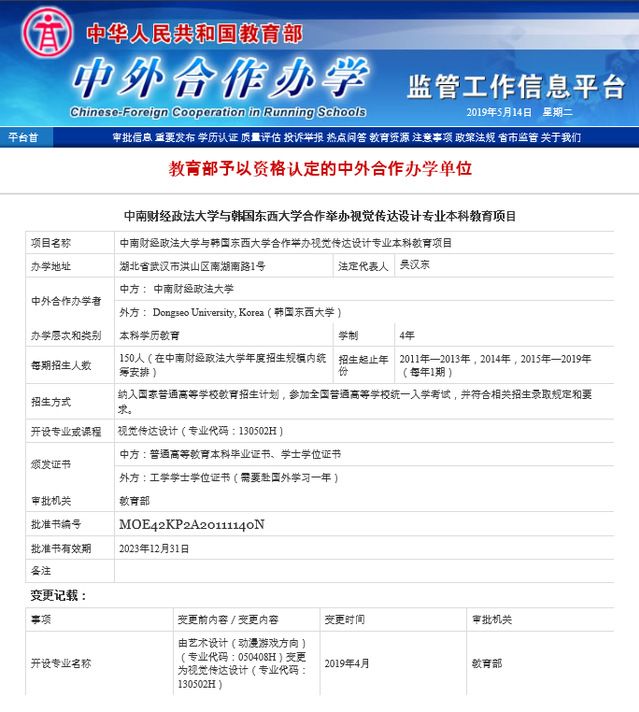 中外合作办学监管信息平台:http://www.crs.jsj.edu.cn/aproval/detail/613