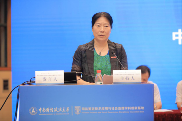 校党委常委、副校长姚莉在开幕词中表达了对与会嘉宾的热烈欢迎。她强调,我校始终坚持社会主义办学方向,大力推进学科融合创新,有效服务国家和地方法治建设与经济社会发展。学校将继续以司法鉴定技术应用与社会治理学科创新基地为载体,促进我校“双一流”学科建设,朝着“建设中国特色世界一流法与经济学科群,最终建成特色鲜明的世界一流大学”的目标不断迈进。