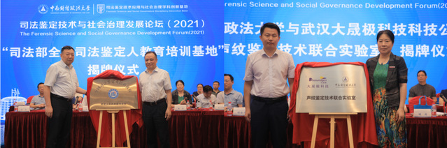 随后,会议进入揭牌仪式。刘嗣元、闫平为“司法部全国司法鉴定人教育培训基地”揭牌;姚莉、邓小涛为“声纹鉴定技术联合实验室”揭牌。