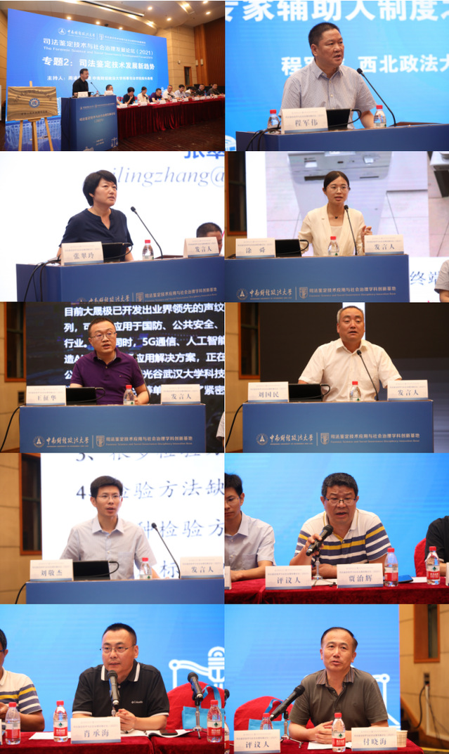 专题报告二由刑事司法学院院长助理周凌副教授主持。西北政法大学程军伟教授的报告题目为《专家辅助人制度之诉诸权威理论思考》,他提出了专家参与诉讼活动的遵从、对抗、教育、分享四种模式,从诉诸权威理论对专家辅助人制度进行了思考;西南政法大学张翠玲教授以《法庭语音证据评价的范式转变》为题,认为学界对当下法庭科学实践的质疑催发了司法鉴定的范式转变,需要改善司法鉴定范式、框架,加强鉴定的科学性和透明性,减少司法鉴定中的主观偏误;西南政法大学涂舜副教授以《电子签名笔迹研究最新进展》为题目进行报告,介绍了电子签名笔记研究的最新进展及电子签名背后的电子数据反映出的特征;武汉大晟极科技有限公司副总经理王征华围绕《智能音频技术在声纹鉴定中的应用》,对声纹鉴定中AI技术和共振峰、多元统计分析等技术的应用和检验方法进行了介绍;湖北军安司法鉴定中心副主任、米兰电竞·(中国区)刘国民副教授做了题目为《交通事故事件性质确定》的报告,对道路交通事故案件进行性质分类,简要介绍了交通事故鉴定的内容;苏州崇法证据科学技术有限公司总经理刘敬杰以《朱墨时序鉴定方法论》为题做了报告,针对朱墨时序鉴定中不同书写、打印方式样本存在的问题进行总结和方案对策阐释。西南政法大学贾志辉教授、中国政法大学肖承海副教授、湖北省公安厅刑侦总队副总队长王志勇、甘肃政法大学付晓海副教授分别对各位发言人的报告进行了点评。