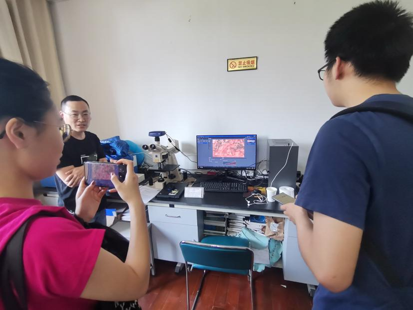 在司法鉴定中心谢萌老师以及刑事司法学院侦查学研究生崔小虎同学的带领下,“信而有证”依次参观了文件检验、声像资料、电子数据等民事诉讼领域中接触较多的材料鉴定实验室。谢老师积极向主创团队介绍了当前司法鉴定中心的业务模式以及建设情况,崔同学也从所学出发,热心地向团队操作演示了一部分使用频率较高的设备,同时积极向同学们介绍司法鉴定的学科发展现状,也再次帮助同学们加深了“法庭科学”的理解。在交流中,“信而有证”团队接触到了一部分前沿的鉴定设备,同时对产品“司法鉴定”模块服务模式中的细节问题进行了确认,也作出了新的思考。