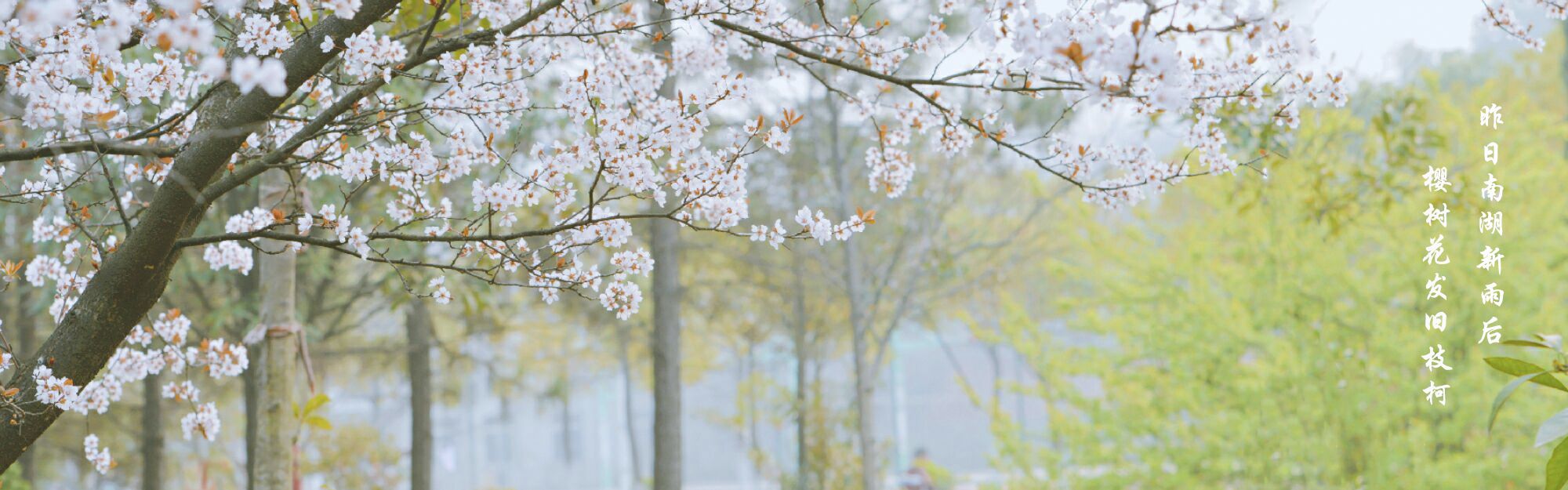 昨日南湖新雨后 樱树花发旧枝柯