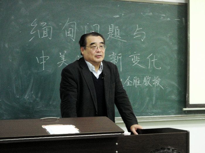 (通讯员 施凡凡)2012年12月18日晚7点,美国美利坚大学亚洲研究中心主任赵全胜教授在我校文波楼111教室进行了一场以“缅甸问题与中美关系新变化”为主题的讲座。此次讲座吸引了众多老师和同学前来参加,热情洋溢全场。 侧重东亚国际关系研究的赵教授从历史、政治和经济等角度概括讲述了缅甸的发展与现状,从历史角度回顾了中美与缅甸关系的发展,讲解深刻,发人深省。 首先,赵教授由缅甸的英文译名Myanmar/Burma引入此次讲座主题,从缅甸的人口、领土面积、历史、政党、经济发展等方面对缅甸进行了一个细致的介绍,尤其谈到了缅甸介于南亚和东南亚的特殊地理位置所带来的战略枢纽地位的重要性。紧接着,赵教授分别讲解了中国与缅甸关系的发展以及美国与缅甸关系的发展。谈及中缅关系发展时,赵教授着重讲述了中缅边境问题和缅甸华人问题,还由一年前中国援建密松水电站被迫停建事件引发了中国对外投资合作和发展观念的思考,在对美国与缅甸关系发展的讲解中,赵教授谈到了几个不同时期美缅关系的转变,尤其是在奥巴马重返亚太战略中缅甸战略地位的重要性,还谈及了昂山素季带领下的民主同盟的对缅甸政坛的影响。最后,赵教授总结性的谈到了缅甸在中美关系中的作用,赵教授认为,中美在与缅甸的关系发展中,应该避免零和博弈,努力寻求合作,缅甸作为当今国际政治大国战略中的重要一环,可以更好的发挥其在国际舞台上的作用。