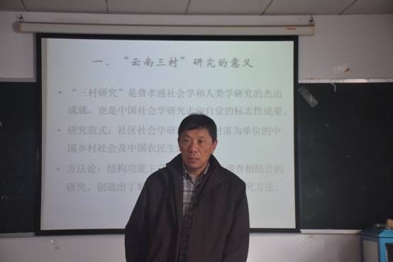 (学生记者 张思涵)11月30日下午2点,第五届中国社会工作教育协会副会长、中国社会学会常务理事、云南大学钱宁教授应邀在文沛楼二楼会议室开展了主题为“费孝通的‘云南三村’研究对当代中国社会学研究的启示”的讲座。社会学专业陈薇老师、郭俊霞老师、熊波老师、唐小晴老师,研究生及部分本科生到场参加了讲座。本次讲座由陈薇老师主持。