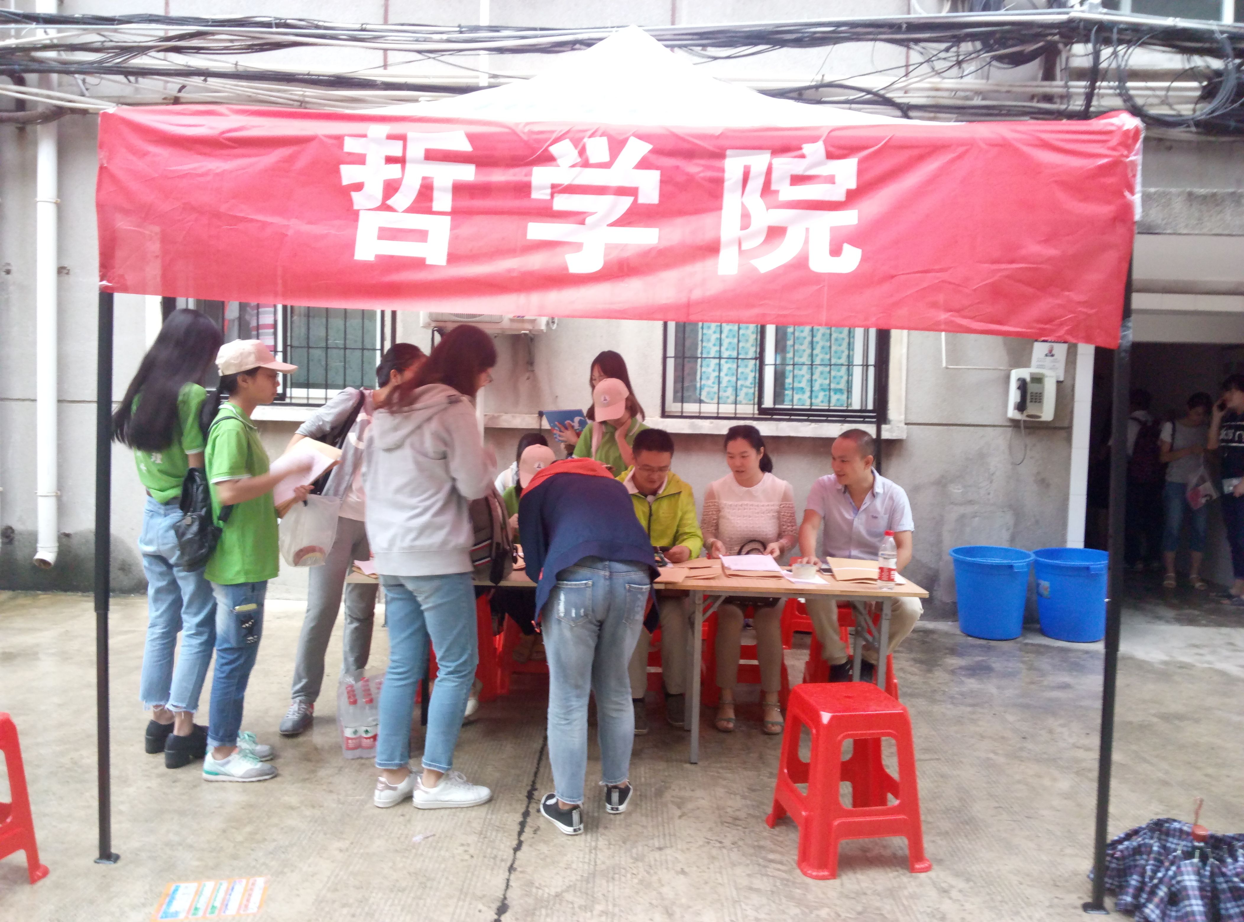 阴郁的天气阻挡不了莘莘学子的热情,今年的新生均网上报到,我院现场迎新工作分别在首义和南湖校区进行,志愿者充足的前期准备为工作的顺利进行提供了保障。哲学院陈食霖院长、党委高碧峰书记、笪宁副书记、党政办陈春英主任、本科生辅导员毛丹丹、郑盼、研究生辅导员王路芳在现场与志愿者们一起参加迎新工作。期间,杨灿明校长、邹进文副校长、姚莉副校长、党委齐文远副书记、党委研究生工作部周佳玲部长等一行前来视察迎新工作,了解学院新生报到情况,同时对前来报道的新生提出热切期盼,希望中南大的学习经历能在他们的人生画卷添上浓墨重彩的一笔。