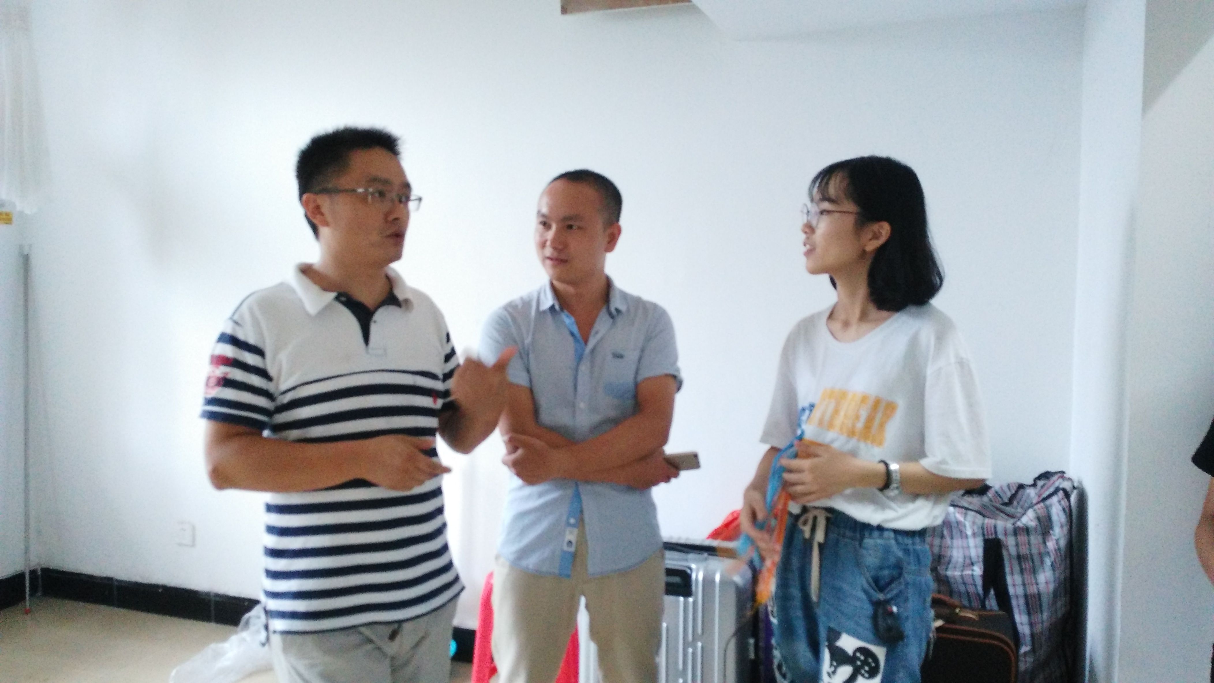 报到当天,学院领导和新生辅导员一道走进学生宿舍看望新生,与同学们进行面对面交流,了解同学们的入学状态。他们对新同学的到来表示热烈欢迎,希望各位同学能尽快适应不一样的学习模式与生活环境,同时提高防范意识,保护自身人身财产安全,与班级同学、寝室室友处理好人际关系,在和谐的氛围中共同学习成长。