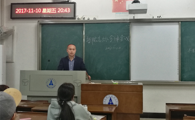 (通讯员 段金玲 陈端奕) 2017年11月10日晚上七点,哲学院志愿者协会在南湖校区文澜102召开第二次全体成员会议,分团委书记郑盼受邀参加。