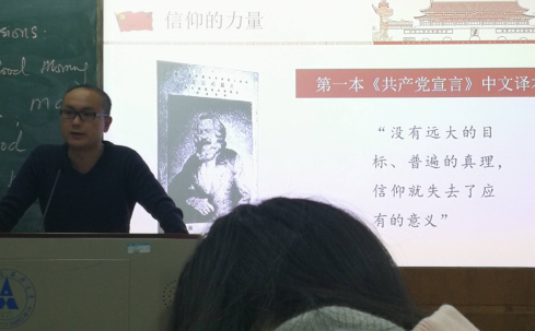 接着,郑盼老师阐述了信仰的力量。老师举了革命早期先烈澎湃的例子,讲到很多革命先行者很多都是出身于富有的家庭,他们找到了共产主义信仰,在马克思主义共同信仰的感召和支撑下,舍弃“小我”,成就“大我”,与当时苦难的人民群众一道,揭开了现代中国历史的新篇章。在战火年代,选择信仰很艰难,坚守更难。正是在共产主义信仰的引领和支撑下,无数的共产党人历经磨难,甚至付出自己宝贵的生命,换得了新中国的成立。在新中国成立以后,在社会主义的建设时期,共产党人的信仰又铸就了新的丰碑。在需要保家卫国的时候,创造了“抗美援朝精神”;在需要国防建设的时候,创造了“两弹一星”精神;在没有石油的时候,迸发出“大庆精神”;在日常的工作和生活中,诞生了“雷锋精神”等等。
