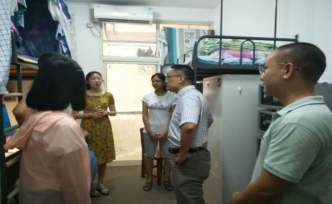 下午,笪宁副书记和郑盼老师、高碧峰书记和王路芳老师分别走进本科生及研究生宿舍看望新生,全面检查宿舍内部配置及宿舍区卫生、安全等情况,对同学们的学习、生活提出关怀,希望同学们尽快适应新环境、融入新生活,与班级同学、寝室室友共同构建温暖舒适的生活环境,在和谐的氛围中一同学习成长。
