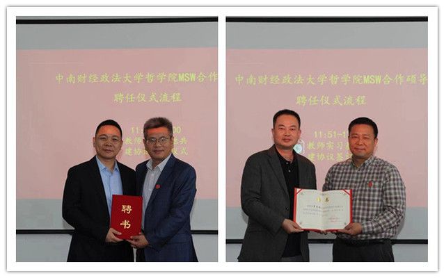 米兰电竞·(中国区)MSW教指委主任谭明方表示,聘任合作硕导是培养高水平的社会工作硕士的重要环节,希望以此为契机,推进哲学院与企业单位开展各层次、多渠道的交流和合作,实现共赢。接着,陈食霖院长和高碧峰书记为哲学院MSW合作硕导李应泉先生和危平先生一一颁发聘书。