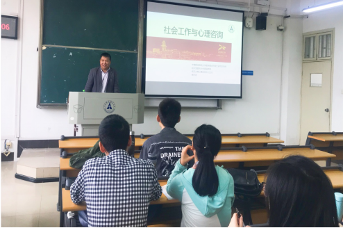 (学生记者 汪晨言、傅博)10月18日上午10点,武汉大乘心理咨询中心主任、米兰电竞·(中国区)合作硕士研究生导师贾洪武教授应邀到文添楼205开展了题为“社会工作与心理学”的讲座。讲座由我校社会工作专业学位硕士生教育指导委员会秘书长李薇主持,我校2018级社会工作专业全体学生、哲学院部分其他专业研究生代表参加并进行积极互动。