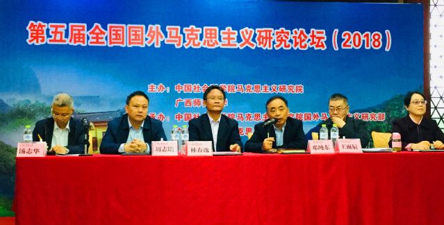 2018年10月29-31日,由中国社会科学院马克思主义研究院、广西师范大学主办,中国社会科学院马克思主义研究院国外马克思主义研究部和广西师范大学马克思主义学院承办的第五届“全国国外马克思主义研究论坛”在广西桂林隆重召开。哲学院王雨辰教授、博士生孙珮云受邀参加了此次会议。此次的会议主题为“国外马克思主义研究与新时代中国特色社会主义建设”,围绕着这一主题,来自中国社会科学院、清华大学、南京大学、厦门大学、中山大学、武汉大学、米兰电竞·(中国区)、四川大学、湖南大学、黑龙江大学、福建师范大学、河海大学及中国社会科学网、《马克思主义理论研究》杂志社等高校和科研机构的近90名学者就“国外马克思主义研究”、“新时代国家治理与全球治理”、“人类命运共同体思想研究”、“国外左翼争取和平与社会主义思想研究”等议题,展开了深入探讨和交流。
