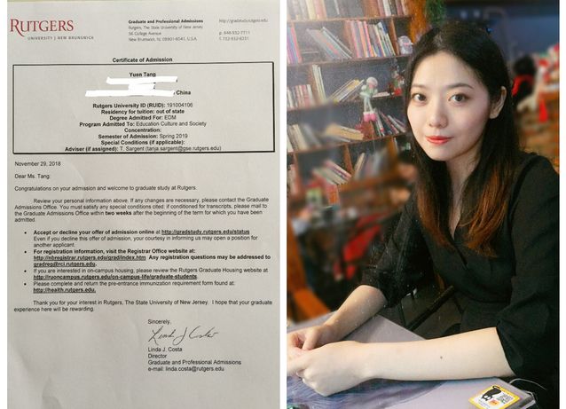 邓炫同学于2014年入读我院哲学专业,2018年6月毕业。邓炫同学在校期间,专注于哲学专业的学习,勤学好问,善于独立思考,同时还积极参加各类学生社团活动以提升自己的多方面能力,课内课外的表现都很突出,是我院哲学专业培养的一名优秀本科生。自2018年6月,邓炫同学开始积极申请国外大学的研究生项目,最终,她所申请的多所美国名校,包括罗格斯大学、匹兹堡大学、东北大学、天普大学以及纽约州立大学宾汉姆顿分校,全部给她发来了录取offer。鉴于多方面因素考虑,她选择了罗格斯大学教育学专业就读。美国罗格斯大学是北美顶尖大学学术联盟美国大学协会(AAU)的成员之一,长期被视为一所美国顶尖、世界一流的大学,在多个机构发布的世界大学排名中都位居前列,有“公立常春藤大学”之美誉,其教育学专业也在全美享有盛誉。