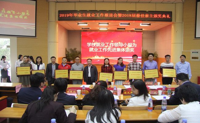 (通讯员 纪玉敏)4月18日14时15分,校2019年毕业生工作推进会暨2018届最佳雇主颁奖典礼在文潭楼一楼招聘厅召开。学院副书记笪宁、学办主任毛丹丹参加了会议。