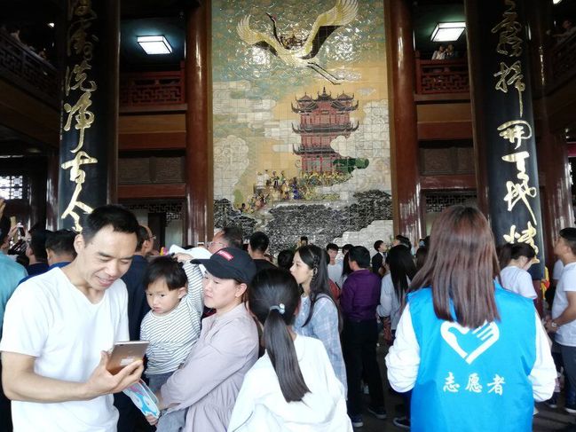 根据与黄鹤楼工作人员的协商,哲院志愿者主要在人流量较大的一楼和四楼进行志愿活动。虽然天气炎热,黄鹤楼人流量又较多,但是志愿者们还是努力以足够的耐心和热情,引导游客,帮助景区维持秩序,保护游客的游览安全,保护景区公共事物,为游客提供更人性化的服务。