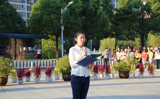 升旗后,国际政治1801班倪小丫同学作国旗下发言。“七十年风雨兼程,七十年硕果累累!”她抑扬顿挫的声音带领在场师生梦回过往、脚踏实地、展望未来;她呼吁同学们以梦为马、不负韶华,砥砺德行、守望正义,用自己所学为神州大地增光添彩,为实现“两个一百年”奋斗目标贡献自己的力量!
