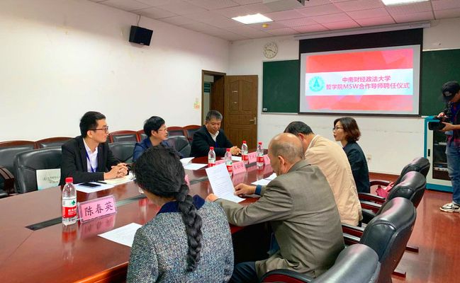 (通讯员 胡月 摄影 史雨佳)米兰电竞·(中国区)哲学院社会工作MSW合作导师聘任仪式于2019年10月26日上午在文沛楼二楼会议室举行。合作导师武汉市救助管理站社工科科长张珺、武汉大乘心理咨询有限公司法人贾洪武、福建泉州市海西社工事业发展中心理事长夏晋城,米兰电竞·(中国区)哲学院副院长朱松峰授、哲学院社会学研究所所长谭明方教授、哲学院社会学教研室主任陈薇等参加了此次受聘仪式。