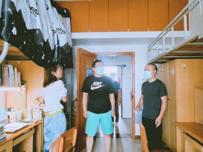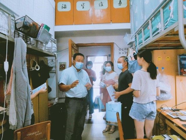 学生宿舍里,老师们与返校学生亲切交流,关心询问同学们的学习、生活和防疫物资储备情况。走访中,高书记要求同学们遵守学校特殊时期的封闭管理规定,提醒同学们定期做好宿舍环境的打扫消毒,叮嘱同学们注意个人安全防护。