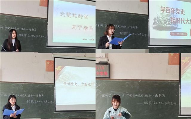 本次比赛共有来自18至20级各班的14位选手参加。他们围绕“理论学‘习’我来讲--学党史讲党史,悟初心谱新篇”的演讲主题,讲述中国共产党成立以来的重大事迹和故事,从历史中学习经验,展望未来,争做担当民族复兴大任的时代新人。