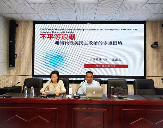 (学生记者 王坤)2021年5月20日下午3点,中国政法大学庞金友教授应邀在文沛楼二楼会议室举行了一场题为“不平等浪潮与当代欧美民主政治的多重困境”的学术讲座。哲学院万健琳教授主持了本场讲座,哲学院部分师生到场聆听。