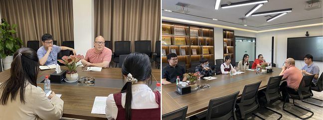 随后,项目组一行与企业导师奇力士人资总监文得坤进行座谈,高级人才经理宿青丘主持此次座谈。文得坤总监对项目组一行表示热烈欢迎,简要介绍了校企合作的设想,希望项目组成员为后续的“管培生”计划代言,推进项目组成员的扩大。