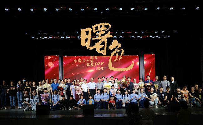 演出结束后,领导、嘉宾登台祝贺演出成功并与全体演职人员合影留念。