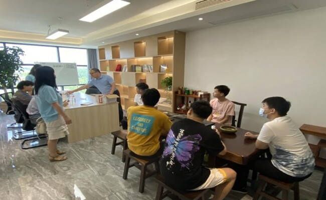 文得坤总监用亲切的语气和同学们进行交流,并就个人情况和以后的职业发展规划等方面对同学们进行提问,也与同学们分享了自己的从业故事,场面十分轻松活跃。宿青丘经理首先让同学们进行了一番别具个人特色的自我介绍,在对同学们有了基本的了解之后,就个人发展、专业知识及对公司的印象等进行了提问,同学们大方应对,表达了自己的看法。