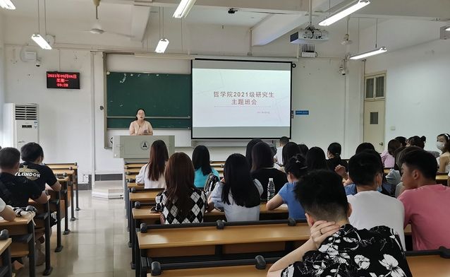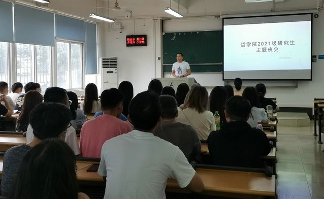(通讯员 李高洋 王路芳)9月6日上午,哲学院2021级研究生第一次班会暨入学教育活动于文添楼105召开。哲学院研究生辅导员王路芳、研究生教学秘书吴林、院研究生会主席团成员以及哲学院2021级全体新生参加了此次会议,本次会议由王老师主持。