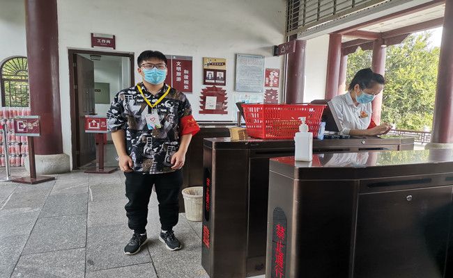 早上8点,7名志愿者按照在培训期间分配好的工作内容前往各自负责的岗位。活动过程中,4名志愿者在检票处协助验票工作人员发放黄鹤楼纪念书签,引导游客有序地进入园区,并提醒游客佩戴好口罩,做好防疫工作。3名志愿者负责售卖黄鹤楼文创雪糕,同时帮助老人购买门票,并简要介绍中秋期间的活动。正值中秋佳节,志愿者们不仅欣赏到了充满节日气氛的黄鹤美景,也帮助了他人、奉献了爱心。