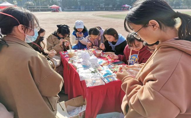 活动开始前,志愿者们布置好场地,并将手写书签、自制发卡和石膏像等义卖物品摆放整齐,以热情饱满的姿态迎接前来参加活动的同学。活动中,不少同学被自制手工吸引前来驻足,参与石膏像上色制作,并表示愿意献出爱心,为寒冬贡献温暖。