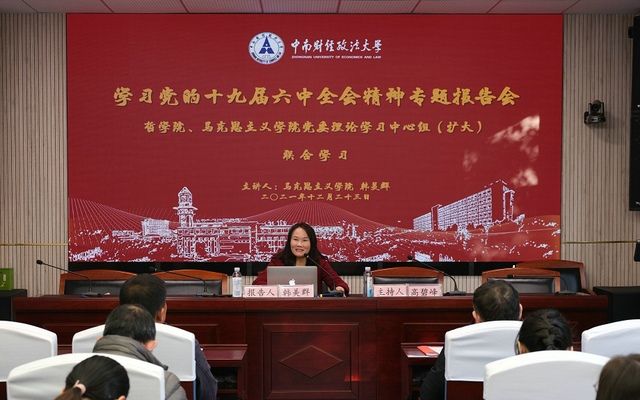 (通讯员 韦晨依)2021年12月23日下午,哲学院、马克思主义学院党委理论学习中心组(扩大)召开联合学习党的十九届六中全会精神专题报告会。本次报告会特邀马克思主义学院副院长韩美群教授担任主讲人,哲学院党委书记高碧峰主持讲座,哲学院、马克思主义学院党委理论学习中心组全体成员、支部书记、青年教师代表及部分学生代表参加讲座。