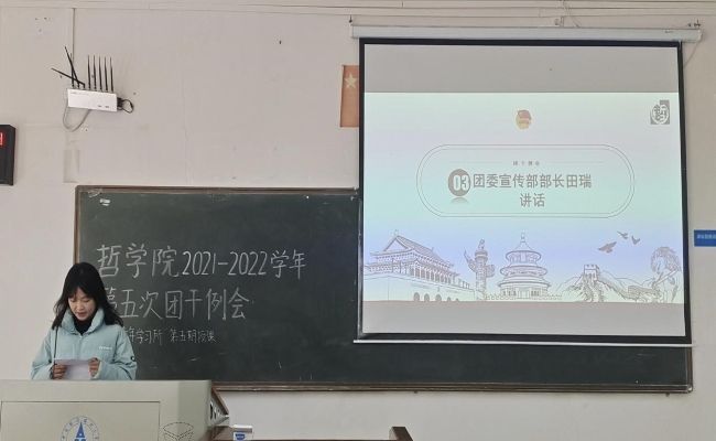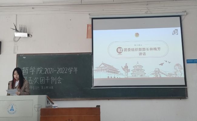 (通讯员 王拓 李嫚)3月24日下午14:00,哲学院2021—2022学年第五次团干例会暨“青年学习所”第五期授课在文澜楼107教室召开。哲学院分团委副书记胡冰冰,哲学院分团委全体成员及2019—2021级全体团干参加了此次会议。