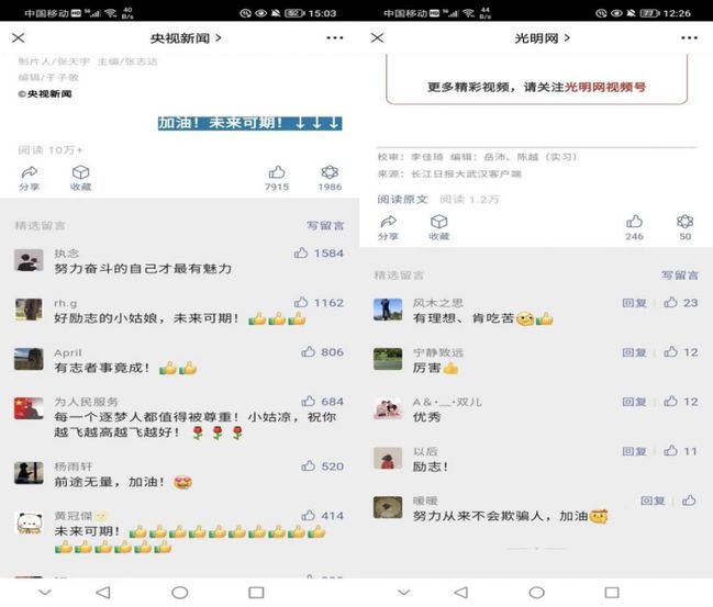 从参军到考研,龚颖有目标就拼尽全力实现,不畏惧艰难是勇气,能选择艰难更是一种智慧。正是她的刻苦与征战让各媒体看到了她的光辉并争相报道。一篇篇推文和数百万点赞转发展现了社会各界奋斗者对龚颖的认可和赞赏。新的征程在召唤,我们要向龚颖同学学习,成就属于自己的不一样的明天。
