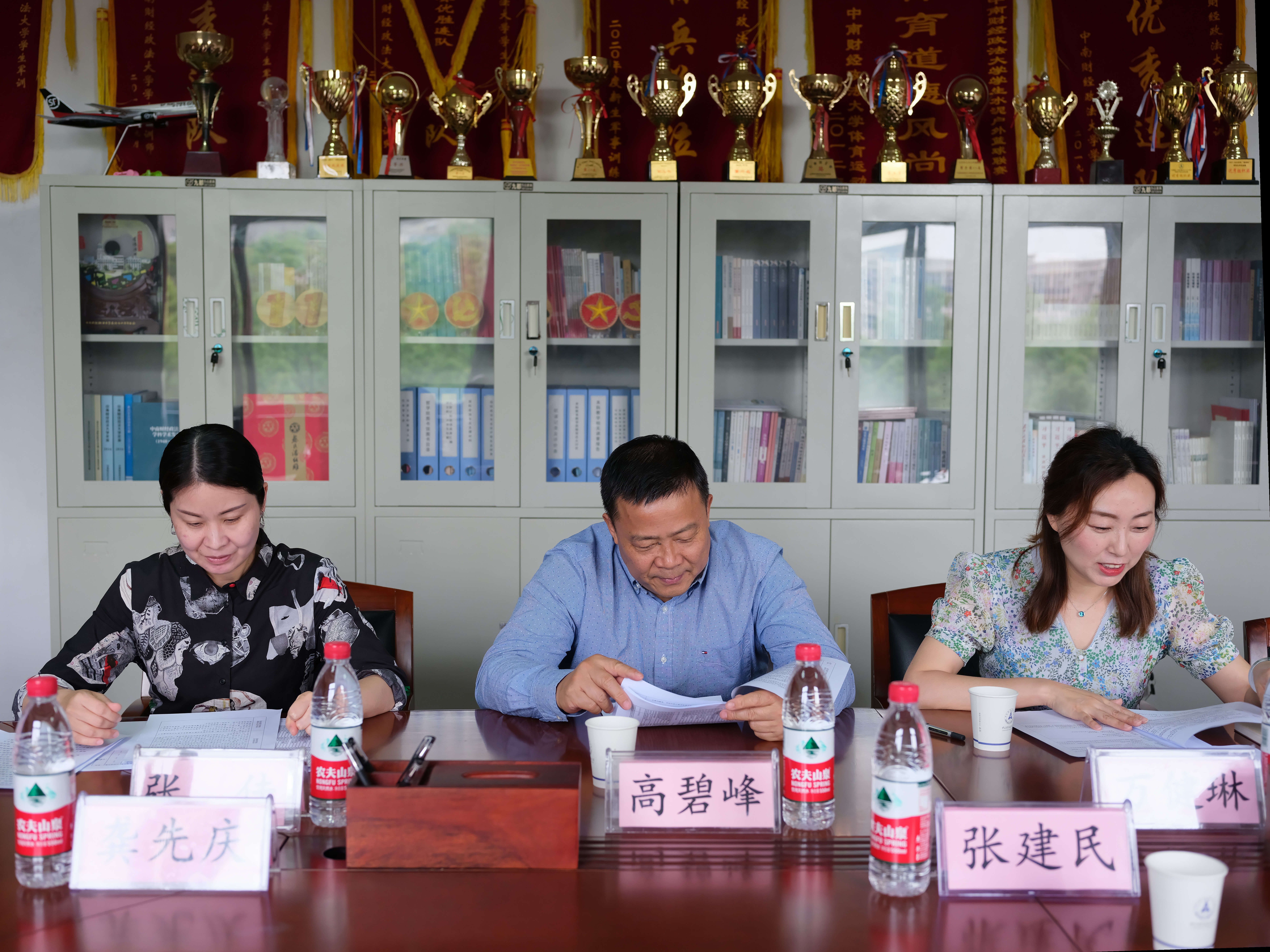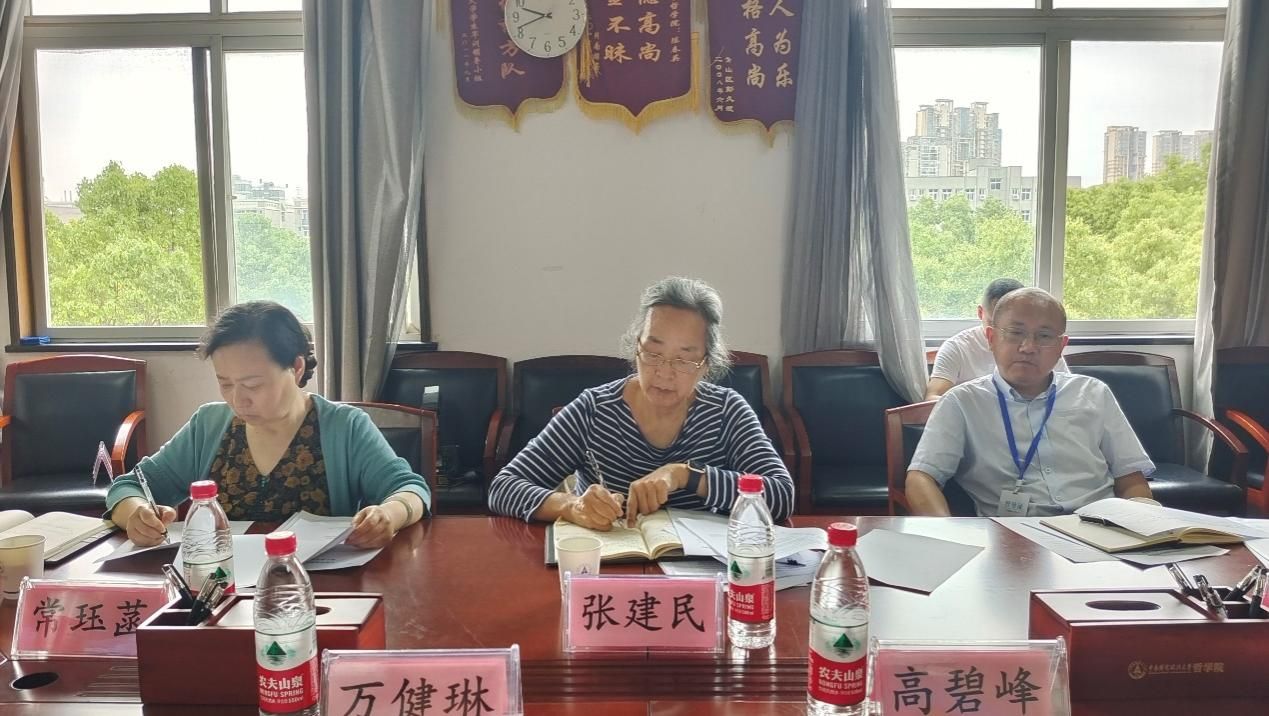 (通讯员:徐鹏)南湖之畔,晴日暖风;文沛楼前,绿荫幽草。2022年4月27日上午9点半,受学校教学督导与评估中心委托,由张建民、龚先庆和常珏菡三位专家组成的校级教学督导组莅临哲学院,对哲学院期中教学检查工作进行抽查。哲学院党委书记高碧峰、分管本科教学的副院长万健琳、分管研究生教学的副院长张佳、院级督导代表徐鹏、教学秘书胡学军、研究生教学秘书吴林参加了此次专项检查活动。