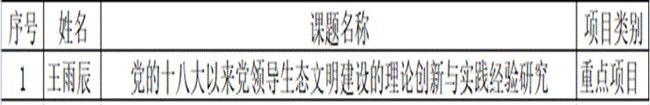 (通讯员 陈春英 郑力源)近日,国家哲学社会科学工作办公室正式公布2022年“研究阐释党的十九届六中全会精神国家社科基金资助”立项名单,我院王雨辰教授申报的《党的十八大以来党领导生态文明建设的理论创新与实践经验研究》课题作为重点项目获得资助。这是王雨辰教授继2017年“西方马克思主义学术史研究”课题获得国家社科基金资助重点项目,2018年“人与自然和谐关系的生态哲学阐释与中国生态文明发展道路研究”课题获得国家社科基金重大项目之后,再次获得国家社科基金重点项目立项。