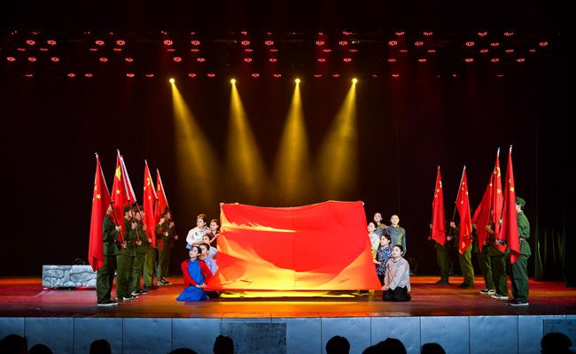比赛当天,来自15个学院的同学们为大家带来了一场精彩绝伦的视觉盛宴。我院参赛剧目《绣红旗》,以江姐及其狱友在狱中秘密制作一面“五星红旗”历史故事为原型,运用舞蹈艺术化地再现了狱中绣红旗的场景。这面用信仰织就的旗帜,是革命先辈们为中华人民共和国成立抛头颅、洒热血的最佳见证。作为新时代的青年,要像爱护生命一样爱护五星红旗,立志民族复兴,不负韶华,不负时代,不负人民,在青春的赛道上奋力奔跑。