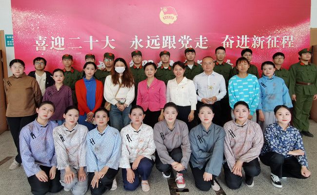 舞蹈排练阶段,院党委副书记徐江带领院团委、学工老师多次前往排练现场,为演员们鼓劲加油。学院二十三名同学克服基础不足、排练场地紧张等困难,争分夺秒,认真投入到每一次的训练当中,展现了新时代青年的责任与担当,提升了学院美育工作成效。