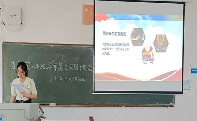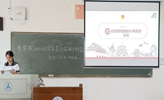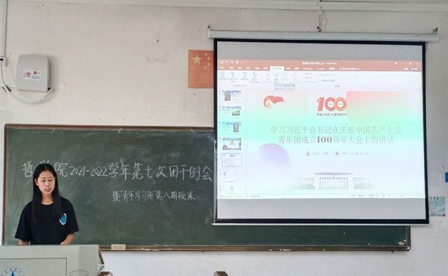 会议最后,社团管理部干事戴雅雯、团委宣传部干事李嫚进行“青年学习所第八期培训”。戴雅雯介绍了“东风快递”——中国人民解放军火箭军的由来以及东风系列导弹,并结合国内外形势阐述了导弹研发以及火箭军存在的必要性。李嫚带领大家学习了习近平总书记在共产主义青年团成立一百周年庆祝大会上的讲话精神。通过重温习近平总书记重要讲话,再次强调了青年团员砥砺奋进的重要性。