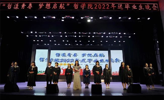 (通讯员:李嫚)“哲漾青春 梦想启航”哲学院2022年欢送毕业生晚会于6月6日下午15:00在南湖会堂温情上演。院党委副书记徐江、院团委书记陈意萍、哲学1801班班级导师王成军、国政1801班班级导师罗雪飞、社会学1801班班级导师李薇以及各系教师代表莅临了晚会现场,2022届毕业生观看了本场晚会。院长王雨辰通过视频录制的形式为送毕晚会致辞,寄语2022届毕业生努力工作,报效祖国;保持终身学习的习惯和为实现社会的平等、捍卫自由的精神不断奋斗的勇气;善待父母,善待自己。本场晚会还通过直播的方式呈现给未能到达现场的师生。